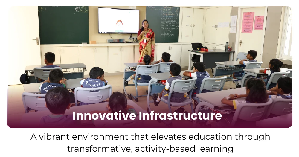 Our Play-based learning approach nurtures creativity, confidence, and curiosity through numeracy, literacy, art, music, and dance, alongside trilingual exposure (English, Hindi, Kannada). Bright, safe classrooms, dedicated play zones, and activity corners encourage exploration, social skills, and a love for learning.