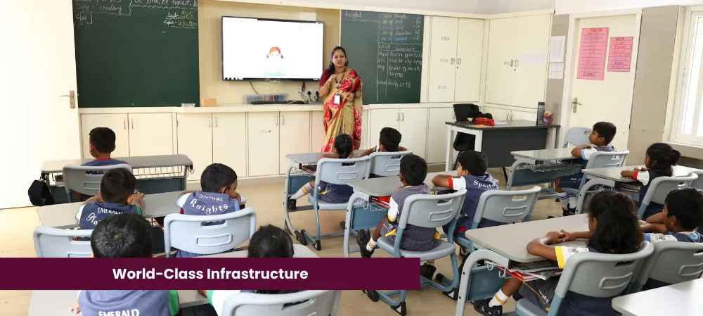 We offer a CBSE curriculum in smart classrooms with digital content, science and computer labs, and interactive learning. Subjects like Mathematics, Science, EVS, Social Studies, Languages, and Computer Science are enriched through projects, ICT integration, field trips, sports, performing arts, and STEM activities.